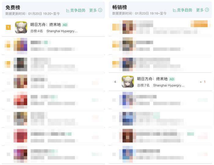 公测第二天,终末地在iOS免费榜排名第1、畅销榜排名第4