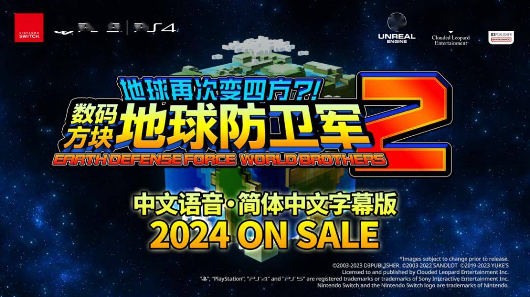 此外,外传衍生作品《地球再次变四方?!数码方块地球防卫军2》也定于2024年,在PS4/PS5及Switch平台发售,预计直接收录中文语言版本。