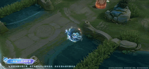 三技能则会召唤一片梦幻海域,出现两只飞鱼环绕海域遨游,期间王昭君也会竖琴演奏,在海域内不断的洒落贝壳,海螺和记忆碎片。