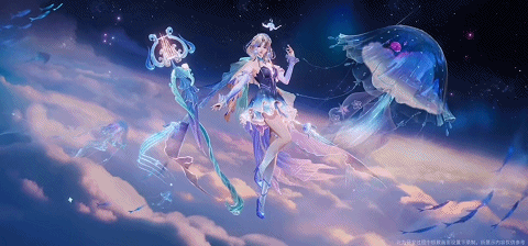 还有循环待机动作,法杖会变成水母造型的竖琴,王昭君轻拨奏响深海乐章。