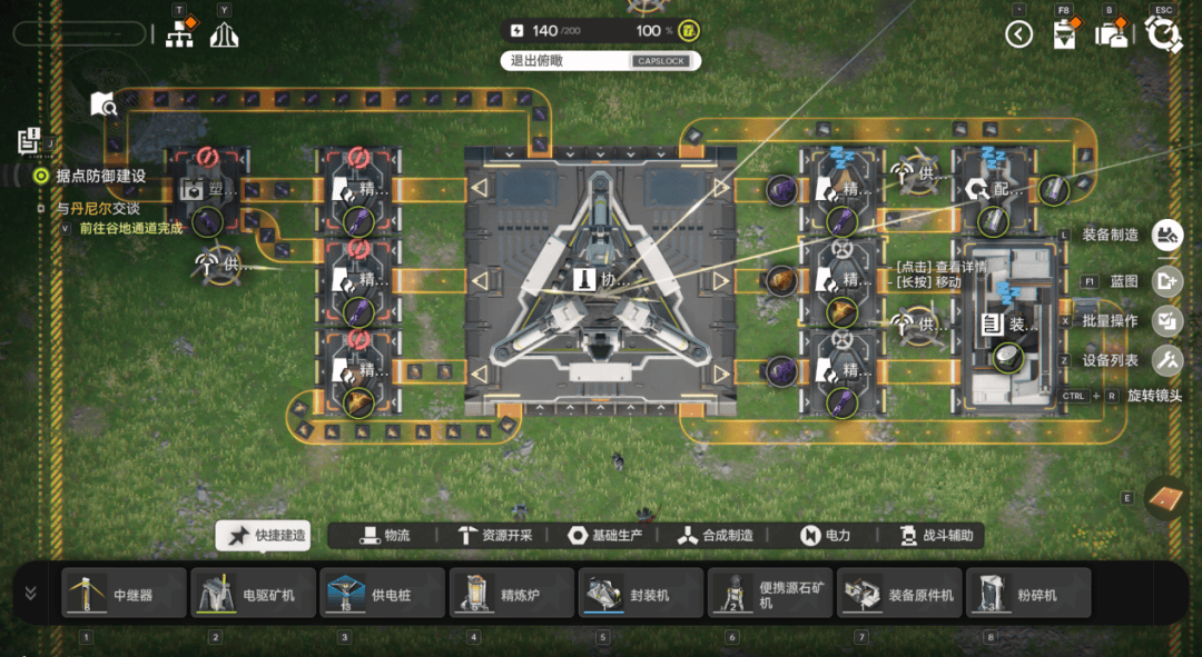 然后就是自动化流水线的工业玩法,该玩法作为主推的玩法并没有做过多的简化,玩家基本可以体验到比较完整的自动化流水线玩法,只是将各个环节科技的解锁与主线绑定在一块了。同时工业玩法的消耗和产出参与角色养成的循环。比如说,工业玩法可以生产玩家身上穿戴的装备,出售工业产品获得的谷地调度券可以换角色的养成材料。