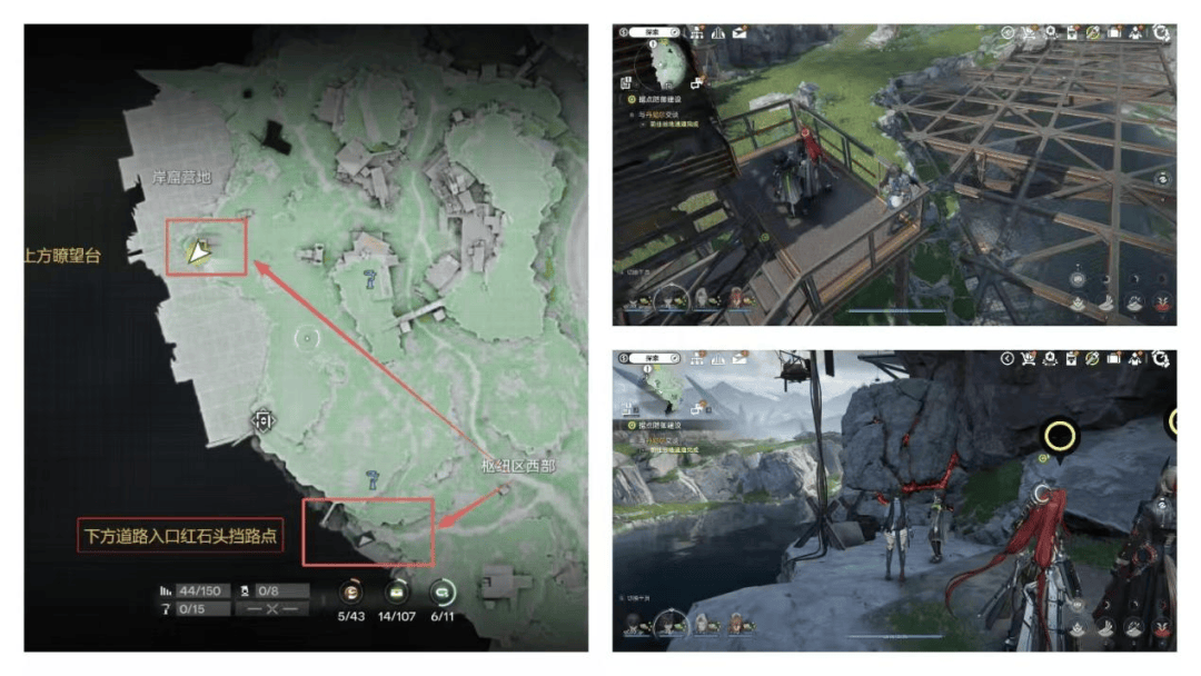 (右上:瞭望塔右下:挡路点)