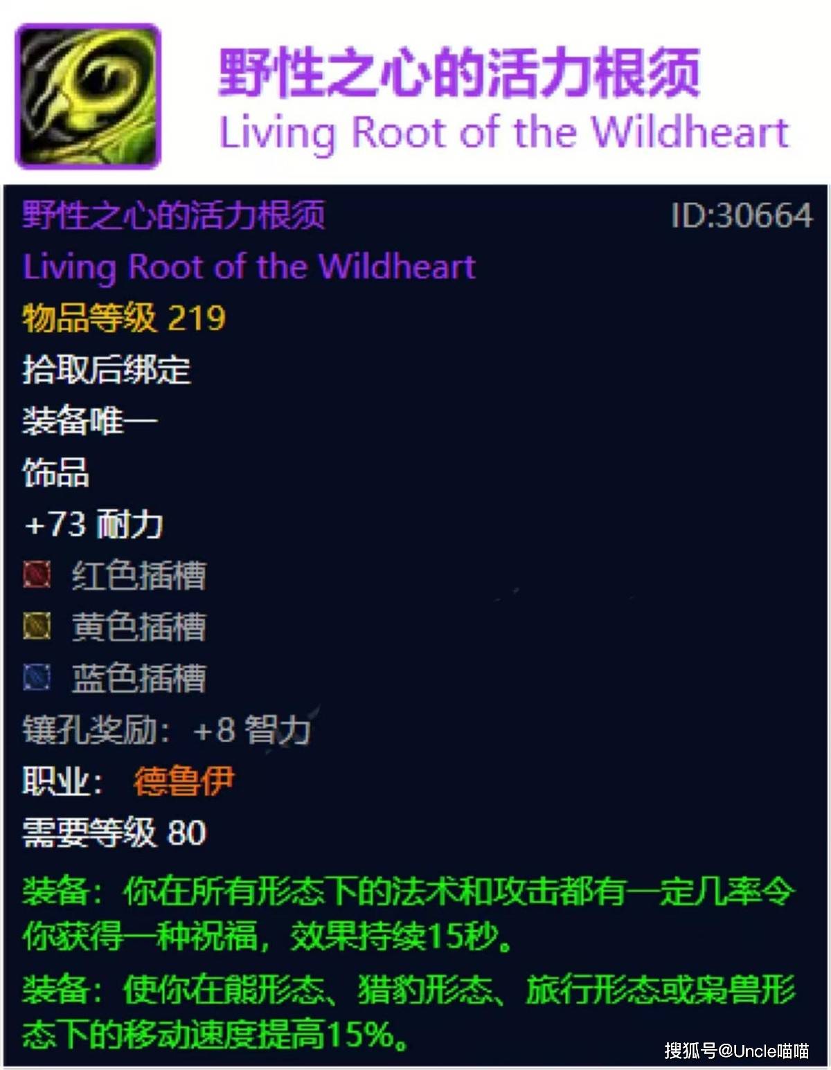 德鲁伊之前版本的职业专属饰品活力根须基本上是等同于玩具的,但是现在基于73点的常驻耐力以及三插槽下,喵叔大胆预言,他会成为野德的一大亮点饰品,如果说15秒的祝福对猫德力量提升数值可观的话,猫德和熊T都可以拿该职业饰品了,至于奶德就算了吧,参考之前的制服应该是法强加持,但是没有其他效果就算是三插槽也撑不起奶德的脸面啊。不过喵叔还是要说句掏心窝子的话,这东西最合适的应该还是熊T,猫德如果实在没东西的情况下可以考虑!