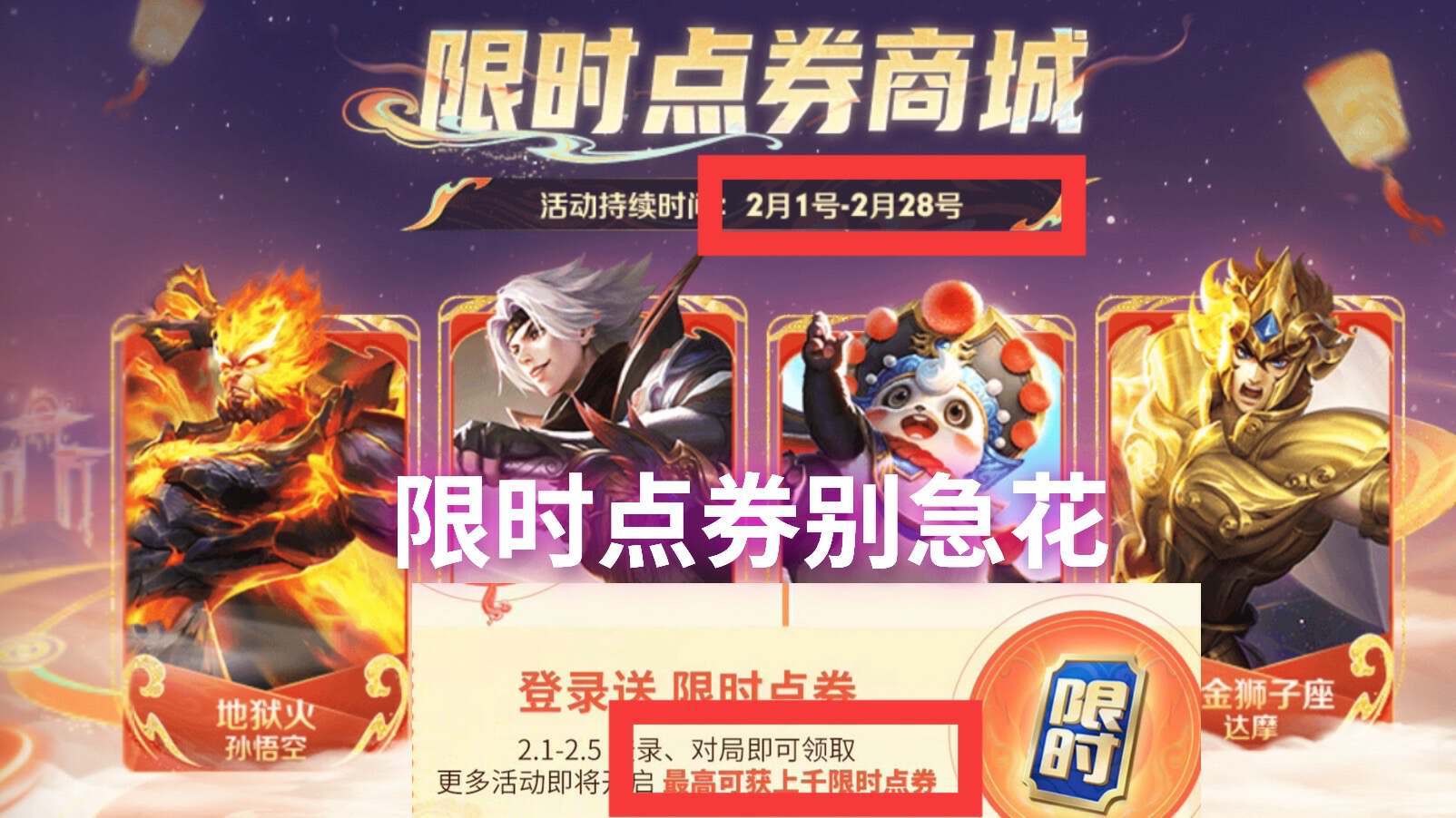 再来就是限时点券商城活动已经上架了,玩家在这几天登录游戏并且对局,可以获得100限时点券。但是拥有这100限时点券也先别急花,因为限时点券在未来一段时间也都还会有活动赠送,玩家把这100限时点券留着,等到后续活动中发放了,可以一起累积获得,根据官方给到的文案来看,玩家登录游戏完成任务,最高是可以获得上千限时点券的哦。