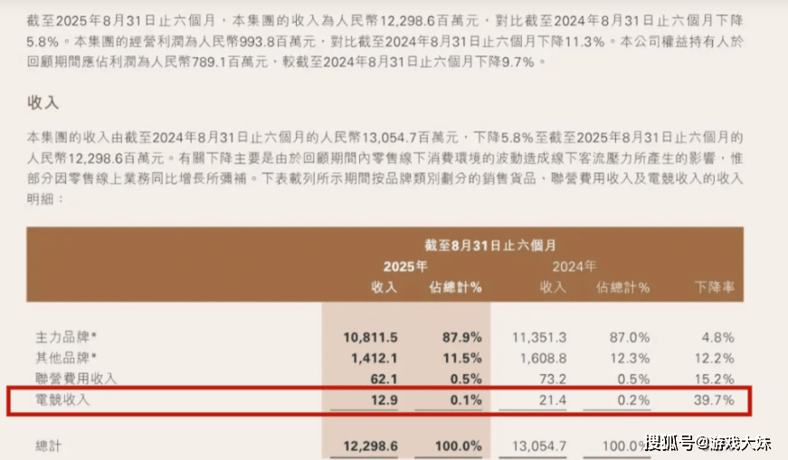 这一变化,在财报中体现得尤为直观,近期滔搏电竞公布的中报显示,其电竞相关营收同比暴跌39.7%,几乎少了四成,不同于一些“看不见账本”的俱乐部,滔搏背靠上市公司,财务数据必须合并披露,因此这份数字具备很强的参考价值,截止到2025年8月31日的半年报中,滔搏电竞板块营收仅为1290万元,而这还只是收入,并非利润。