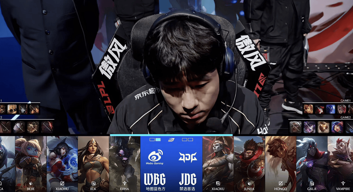 就在一天前,JDG刚刚凭借顽强的韧性,在巨大经济劣势下两度翻盘,零封了阵容豪华的BLG,中单HongQ对Knight的单杀更是惊艳全场。这场胜利让队伍士气大振,却也让他们不得不立刻投入到背靠背对阵WBG的紧锣密鼓的准备中。