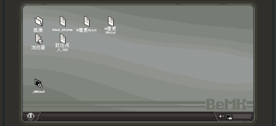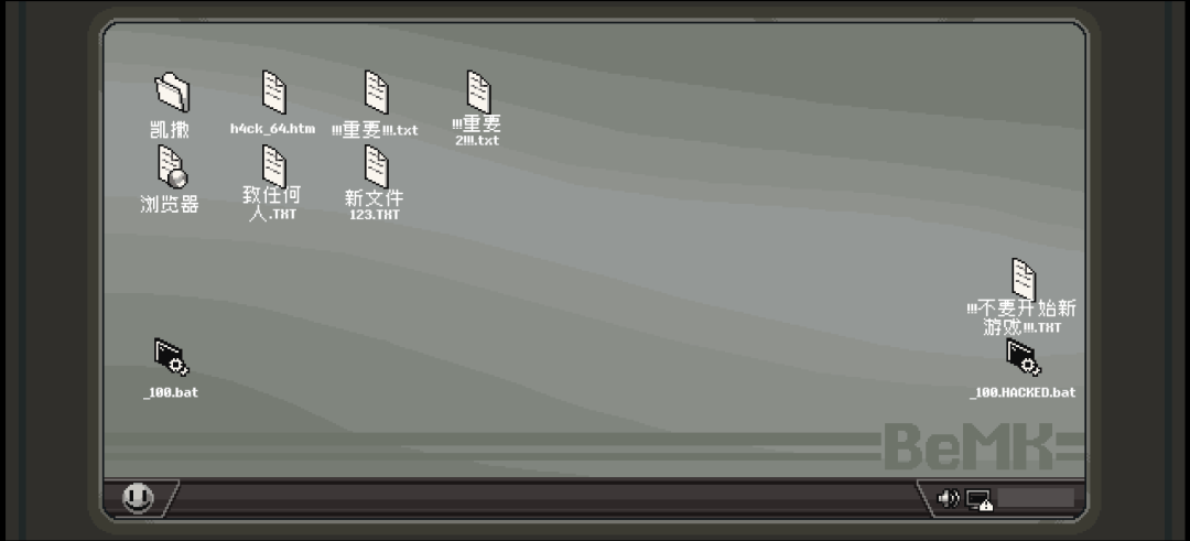 当第一天结束后,我没有得到法官所谓的“审判结果”,也没有看到我选择的分支选项会导向什么具体剧情,只是在一堆代码提示中返回桌面而已。但这次,桌面上多出了两个新文件——“不要开始新游戏.txt”和“_100.HACKED.bat”。