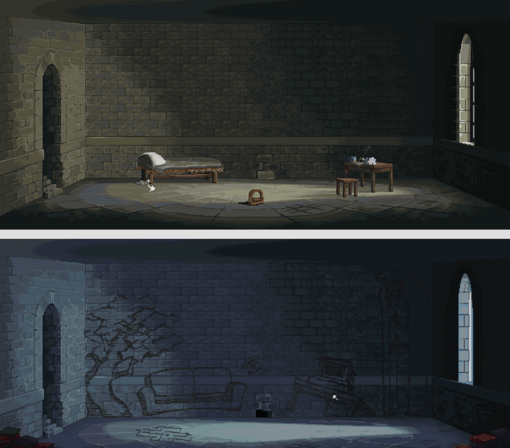 与各物体交互,玩家将获得道具和诗一般的碎片化文本,同时会解锁几个新场景,如老鼠洞和墙上的骷髅。在床上自主选择度过两个时间段后,便可以结束当天,再次经历法官的审判。如此循环往复,解谜推进,玩家将获得越来越多的信息,屋内场景也会发生惊人变化。