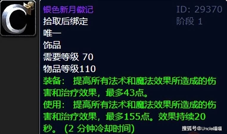 对于法系DPS玩家而言,如果你不是地球时代周年服的原住民,而是新起的小号,那么牌子饰品银色新月徽记就是必入的存在了,再刷上英雄模式奴隶围栏的夸格米拉之眼,那么初期就几乎可以说是毕业了,不夸张的说基本上只有在二阶段风暴要塞和毒蛇神殿开放后你才有可能更迭的可能性,不然的话这对组合吃排骨用到黑暗神殿是一丁点问题都没有的。不过话说新月徽记是好刷到手的,就是夸眼你要是脸黑点就有点难度了。