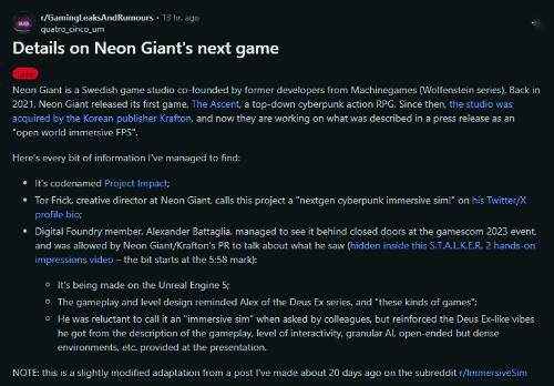 近日,Reddit论坛有网友曝出《上行战场》开发商Neon Giant正在开发的下一款游戏的详细情报。