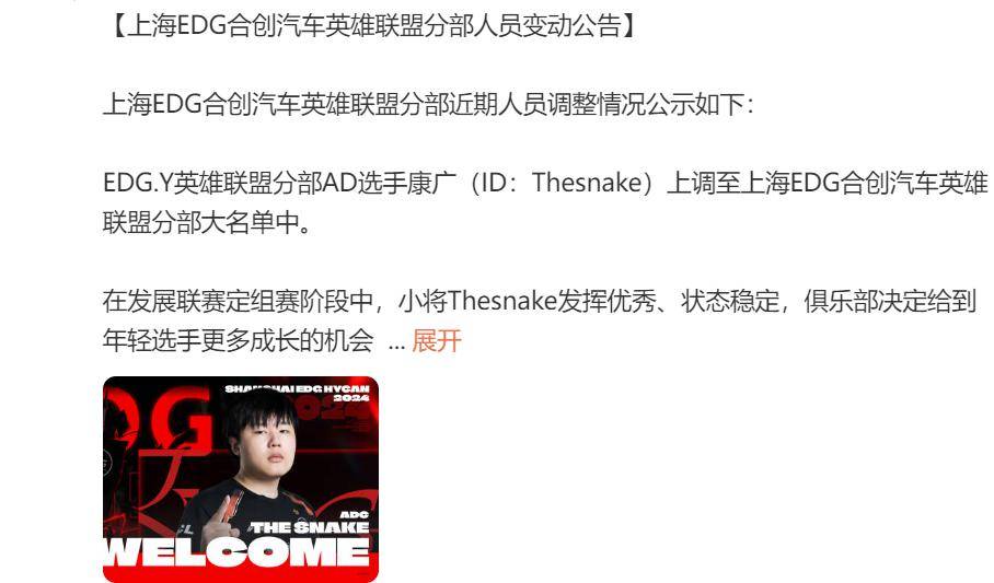 但EDG是31号宣布将Thesnake再次提回一队的(去年6月就提过一次,后来又回二队了),所以在对阵BLG这场比赛中,Thesnake是不可以作为首发进行上场的,但在这周二(30号)输给LGD后,EDG似乎是铁了心要让这个计划提前,即便是违规。