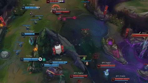 但很快BFX利用岩雀梦魇的双飞体系不断进攻威胁T1,而且前期每每小龙刷新的Timing,BFX都占据优势顺利拿下了听牌龙。