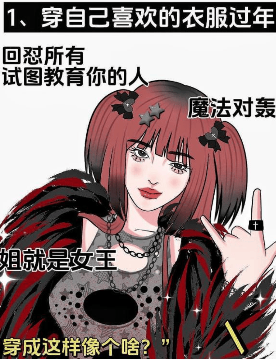 对于穿搭上,他们不像90后,因为亲戚的指责而自卑,而是骄傲地穿上自己喜欢的衣服,“姐就是女王”;而在2026年春节即将到来之际,00后还把蜜雪冰城风带到了穿搭上,他们花6块钱买新年战袍,却一点不觉得寒酸,把长辈看懵了。