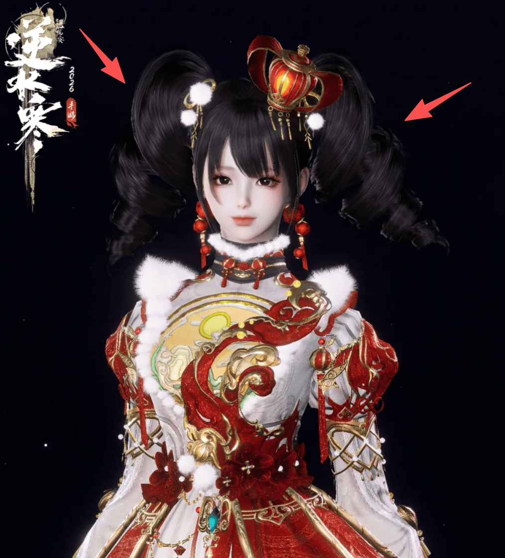 更好看的是发型,那个被玩家戏称为“妙脆角”或“广式双马尾”的螺旋牛角包造型,堪称本套时装的“热梗担当”,走在街上辨识度直接爆表,妥妥的社交悍匪装备。