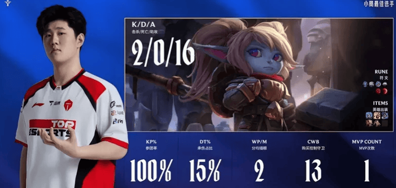 第二局就更不用说了,TES仅用25分钟就结束战斗,本以为MVP会是JIAQI拿到,没想到却给了辅助Fengyue,要知道他上一场比赛才接过全锅,这场不仅秀了一手波比,还把对位辅助打爆,最后荣获MVP实属不易。