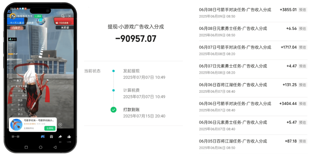这一系列基建的完善, 让更多没有运营团队的普通人跑了出来。现在,不少主播仅通过 “推游戏”就能获得不菲的收入。典型的例子像“牛牛午牛午牛”。作为开过淘宝店、做过微商的二孩奶爸,在2025年,通过在视频号做游戏内容,他在半年内就获得了近40万的收益。