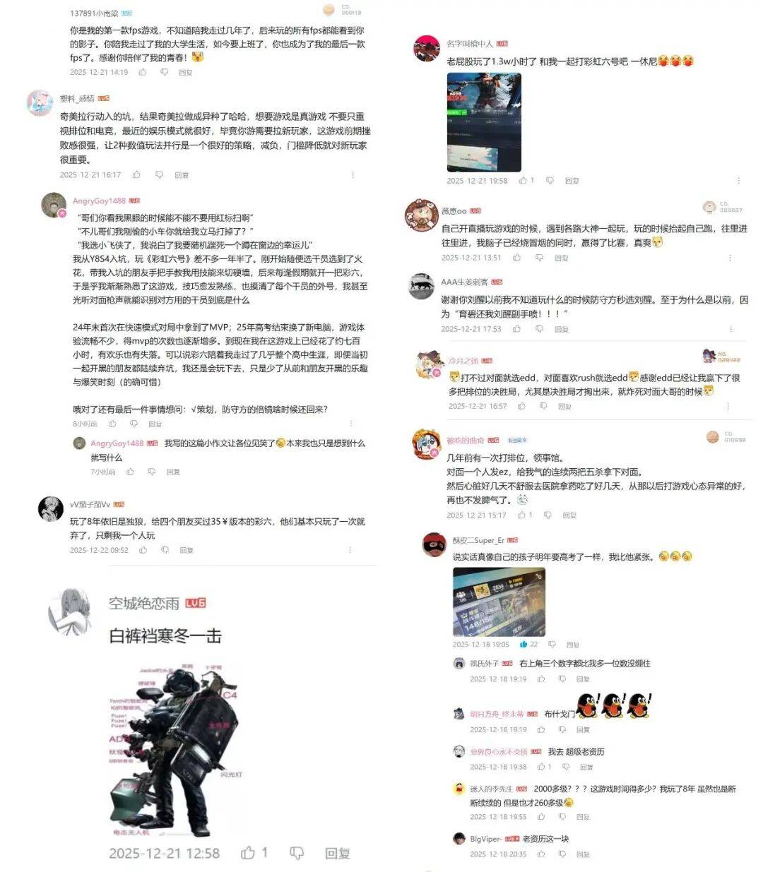 这一战略可以溯源到2025年6月,由国服团队官号上传的第一部视频:资深干员2025——《彩虹六号》中文社区玩家纪录片。