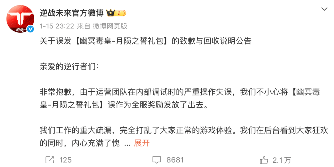 官方很快发布了道歉声明,大伙才知道原来是内部失误导致的全服发枪,本来大伙还挺生气,准备冲塔。