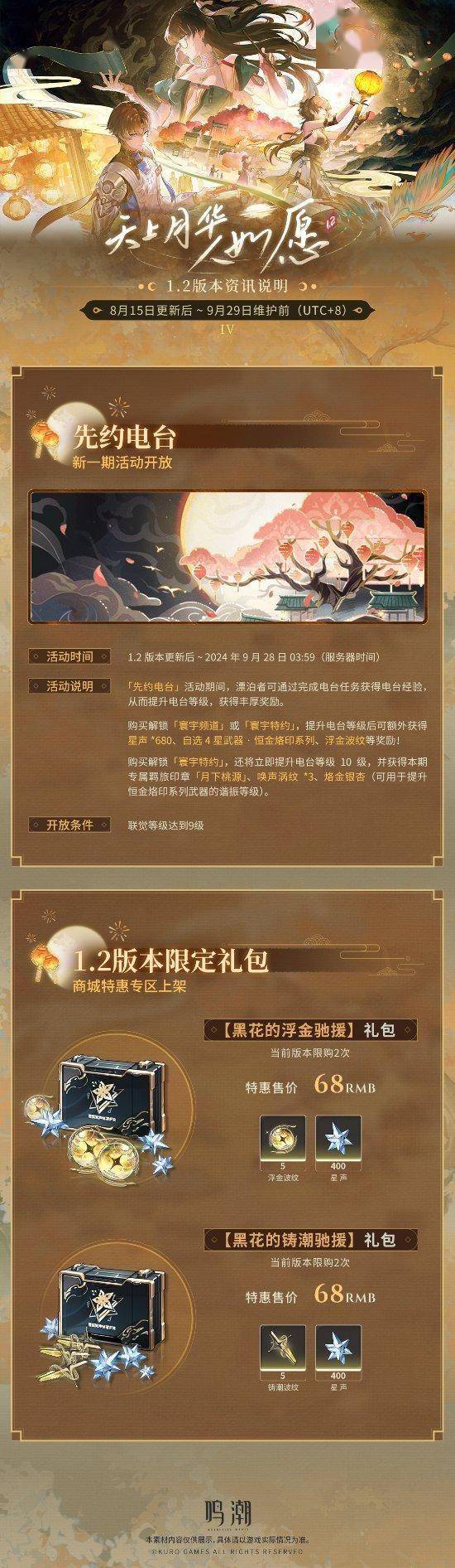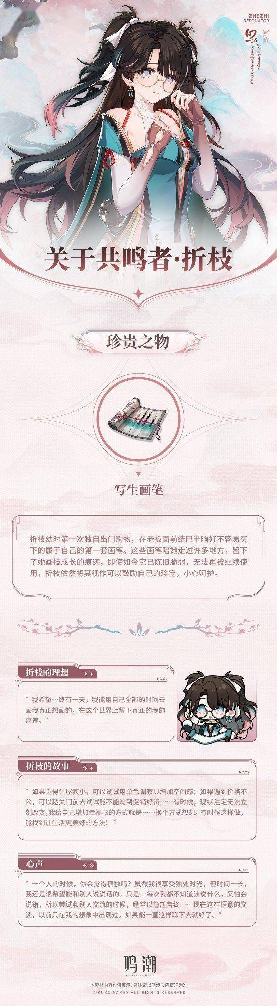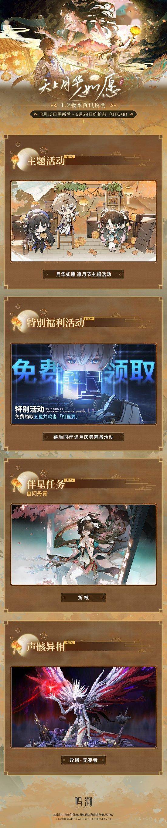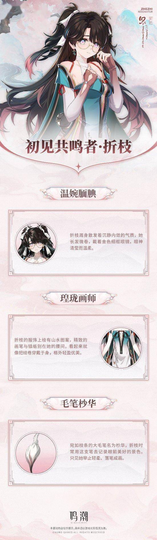 8月12日,《鸣潮》官方放出了新角色折枝的展示图与全方位介绍,包括待机动作、界面展示、唤取动画与技能展示等。除此之外,官方还放出了游戏1.2版本「天上月华人如愿」的更新说明,一起来看下。