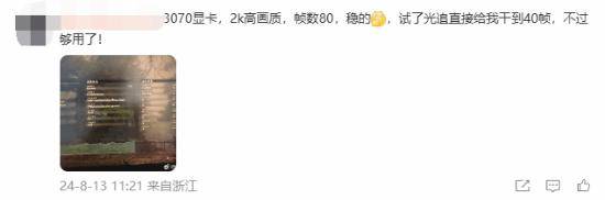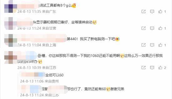 在评论区里,众多玩家根据自己机器的配置纷纷进行了测试,有玩家表示使用RTX 3070显卡在2K分辨率的高画质设置下,平均帧率能够达到80帧,开启光追后帧数降低至40帧。还有玩家用GTX 1660Ti显卡以中画质进行了测试,结果显示平均帧率能达到64帧。还有玩家已经迫不及待,表示:“好好好!游戏还玩不到!先玩玩跑分工具解解馋。”