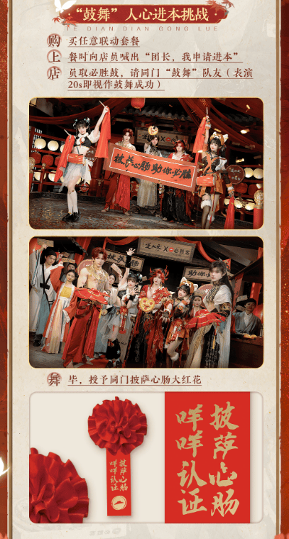 因此,这次《逆水寒》端手游和必胜客联动,咩姐成为了最为重磅的嘉宾,比如玩家在联动门店当场喊社死口号“团长,我申请进本”,再边敲鼓边跳舞,舞毕,咩姐会现场颁发“披萨心肠”大红花。