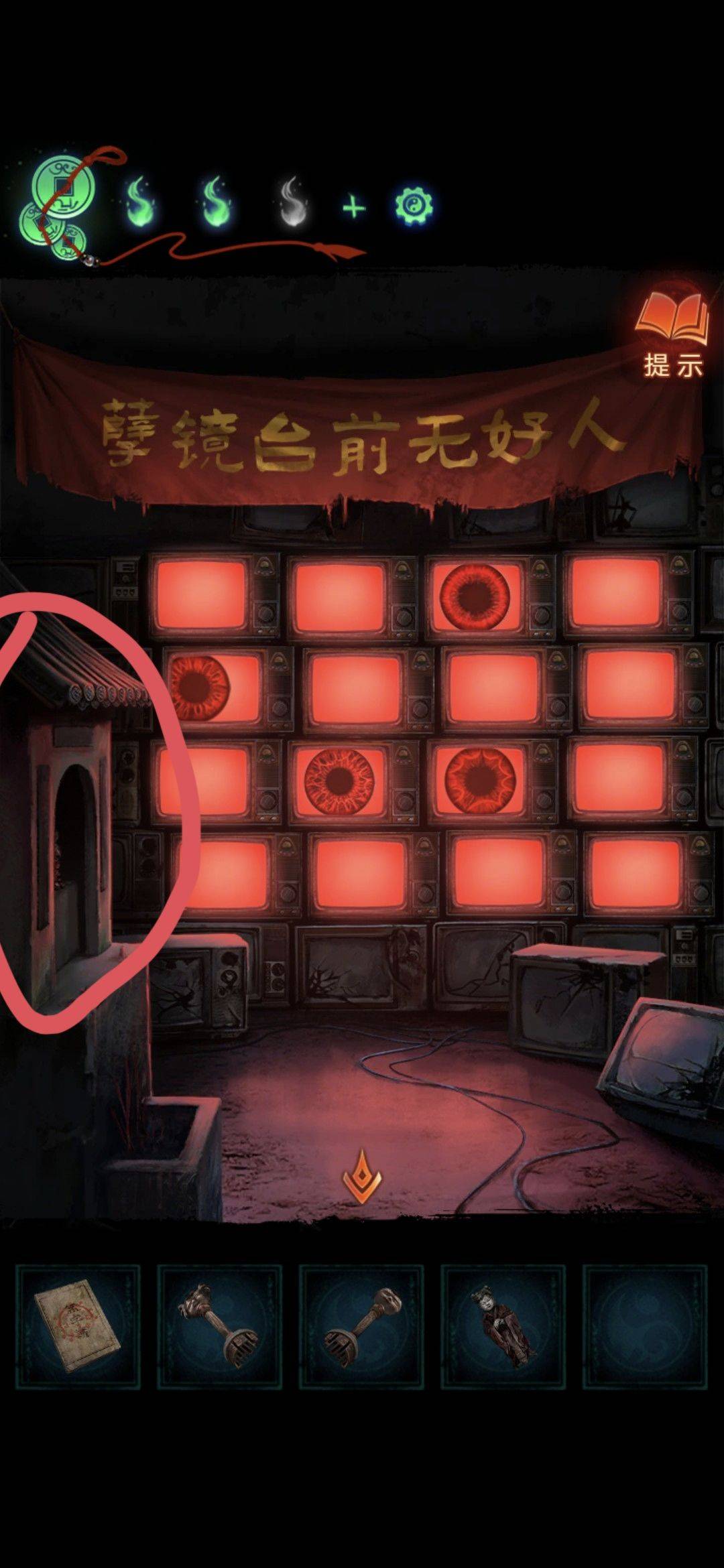 回到热苦地狱,石柱使用铜钥匙,然后使用大夹子继续开(前面高能注意)获得道具旋钮,然后回到孽镜台(第2排第3个)安装旋钮,每个频道都看一遍