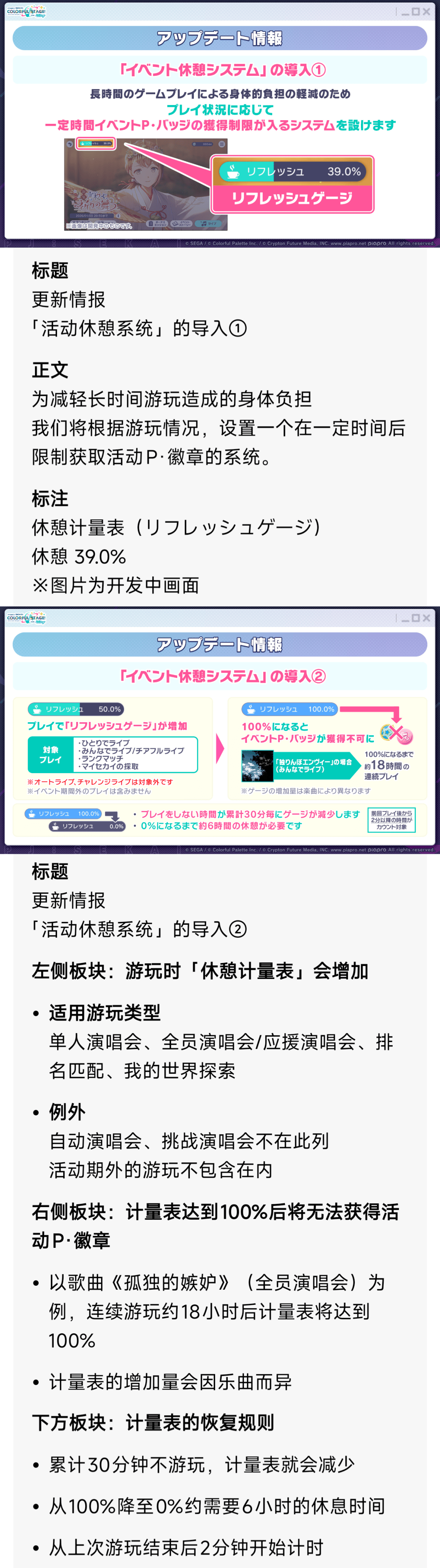 最近,《Project Seikai》宣布了二月底的更新内容——连续玩18小时就会毫无活动收益,必须休息满六个小时才可以再次获得收益。