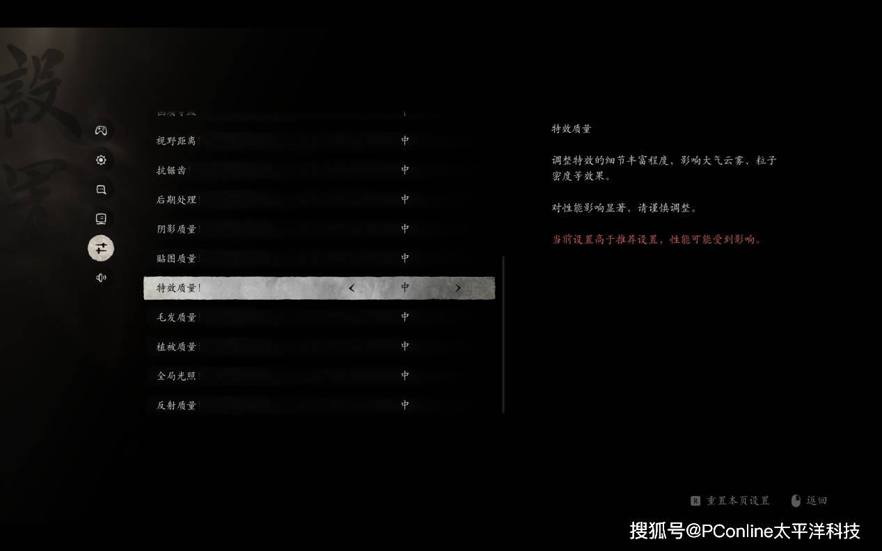 在画面表现方面,《黑神话:悟空》支持全景光线追踪,并提供了从低到影视级的五个画质等级供玩家选择。游戏还细化了阴影、贴图、特效、毛发、植被和光照等画面元素的单独调节选项。