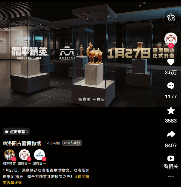 比如在题材与地标择取上,从长城、大唐西安再到今年的丝路敦煌,《和平精英》已经挖掘了许多宝藏级的联动,把多样的文化用游戏的内容形式带进玩家身边。包括此次与洛阳古墓博物馆的合作,也是一次全新的尝试。