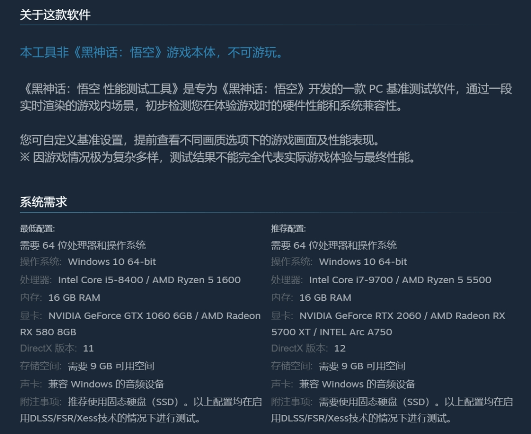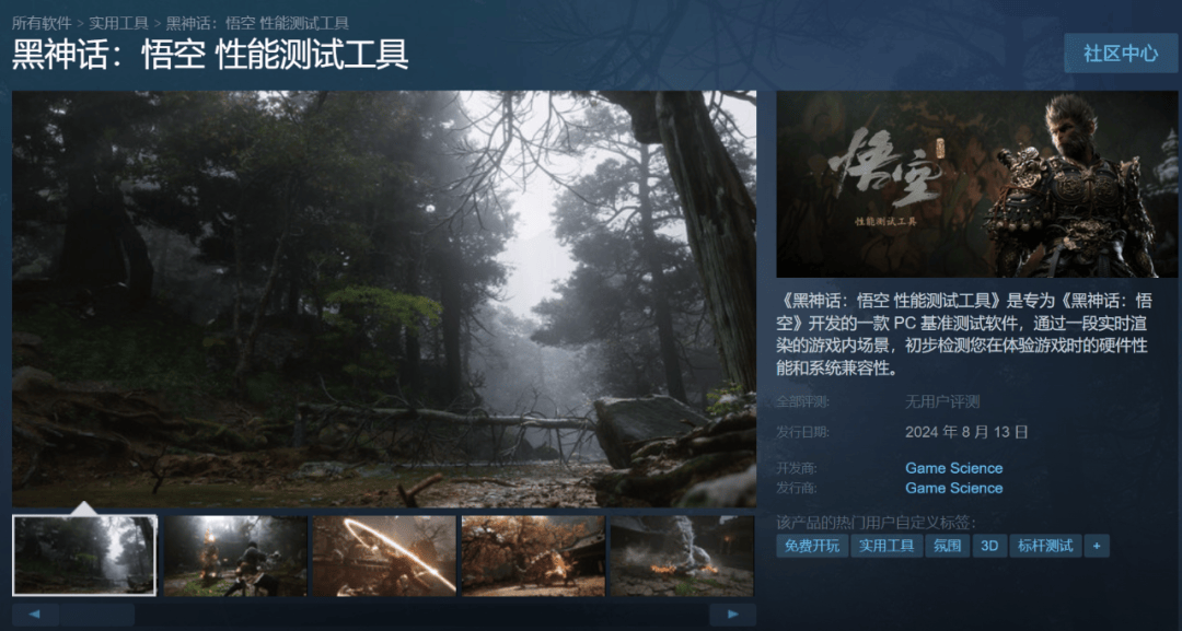 还有6天,期待许久的《黑神话:悟空》终于要和大家见面了,今天游戏科学官方表示,《黑神话:悟空 性能测试工具》已在STEAM商店开放免费下载。