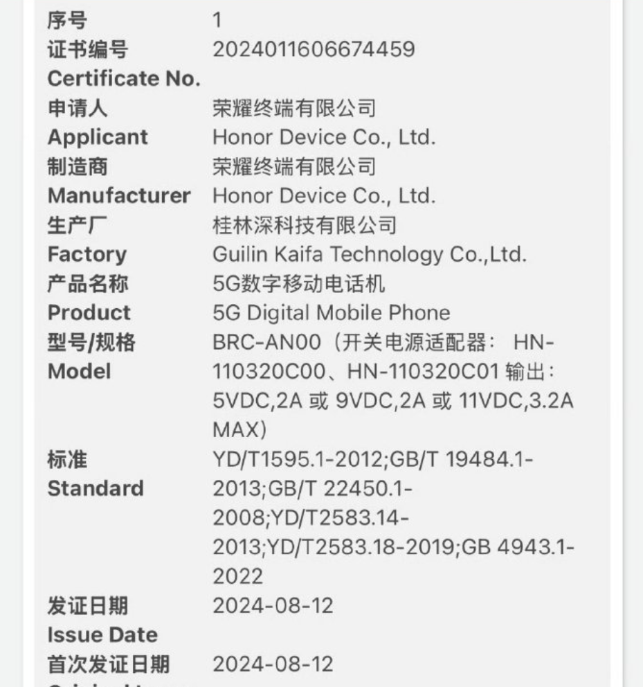 近日一款型号为BRC-AN00的荣耀新机通过了3C认证,不出意外的话,应该就是荣耀X60新机,支持35W快充。