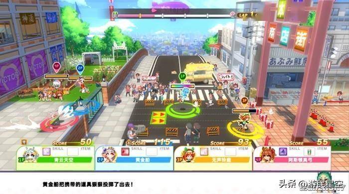 最后的粉丝答谢障碍赛,则更像是游戏原本的赛马玩法和热血系列的结合。四位马娘将在包括操场、草地、甚至民居等地形上,展开一场混乱的竞速障碍赛。和热血系列一样,在障碍赛的道路上散落着各种干扰对手的道具。马娘们各具特色的技能,同样可以用来强化自己对其他人造成阻碍。