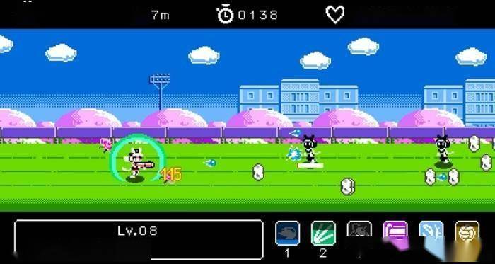 黄金船的大冒险2类似结合了横版过关玩法的类《吸血鬼幸存者》。其画面和UI看起来相当复古简洁,颇有古早FC主机的感觉。但麻雀虽小五脏俱全,这两种游戏类型该有的玩法和乐趣可以说一样不少。