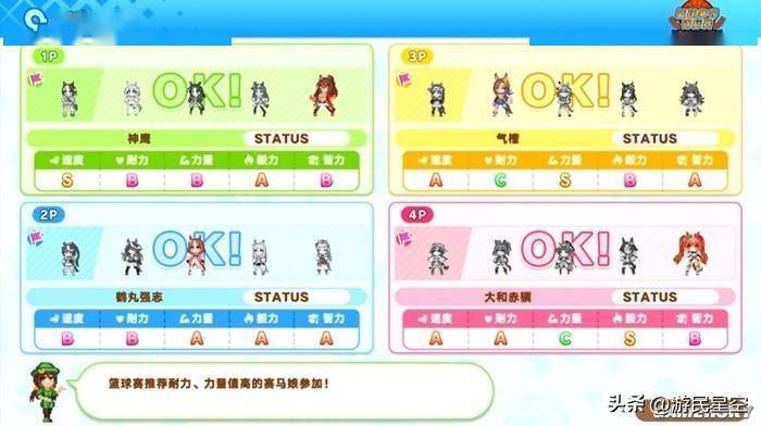 游戏中出现的马娘们以五个为一组分成了不同的队伍。每个马娘都有包括力量、耐力在内五种不同的属性,玩家需要根据参与的项目,选出能力最合适的马娘。