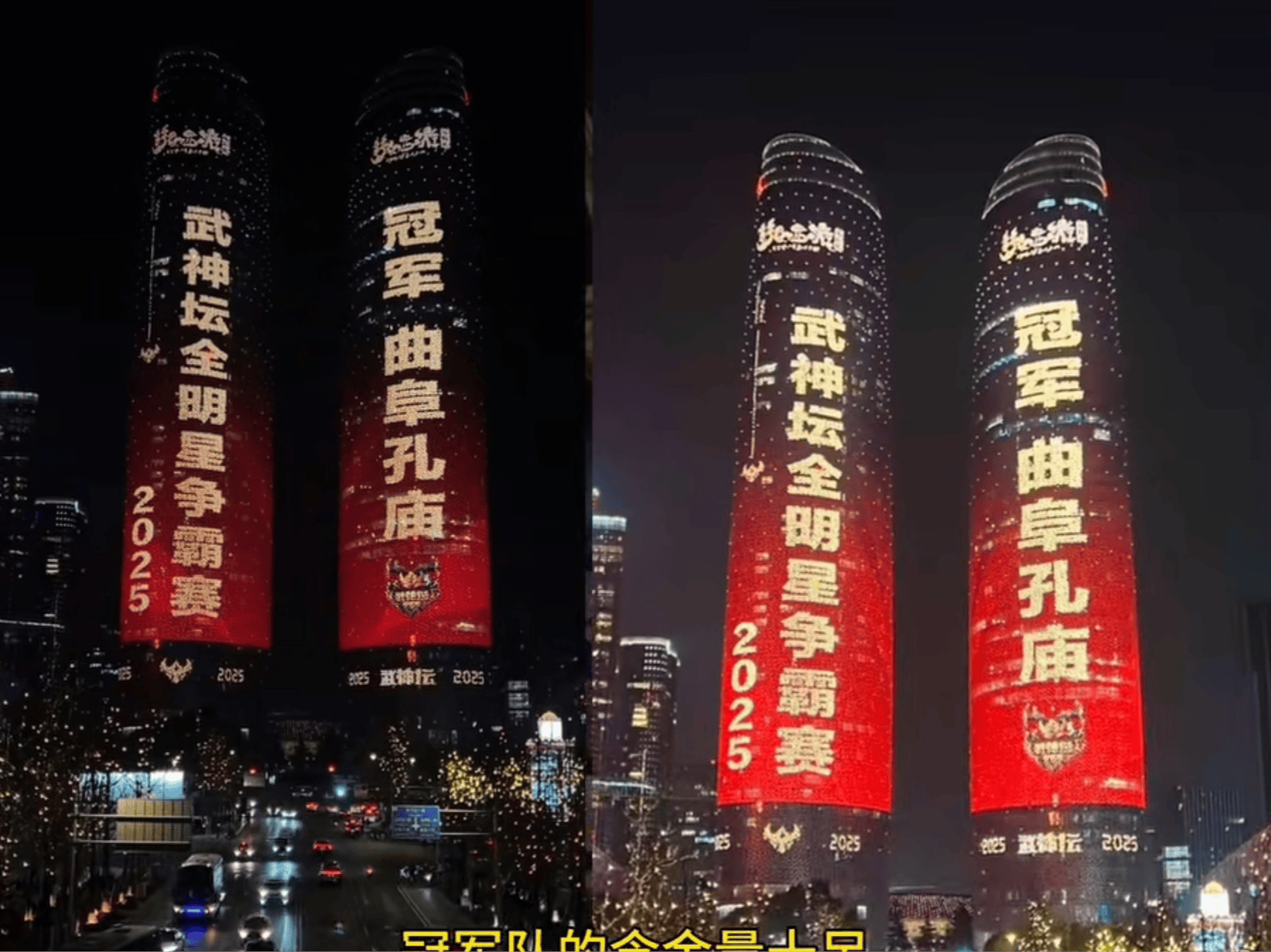 曲阜孔庙团队在夺得2025全明星武神坛冠军后,不仅收获了9个蚩尤奖杯和9本超级兽诀等丰厚游戏奖励,还能登上成都双子塔展示整整5天,可谓牌面拉满!