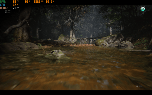 ▲接下来是2.5K超高画质+DLSS 3质量,平均帧速是53fps,有小幅度提升,也算是可玩的水平,关掉帧速显示软件,说是流畅也无不可。
