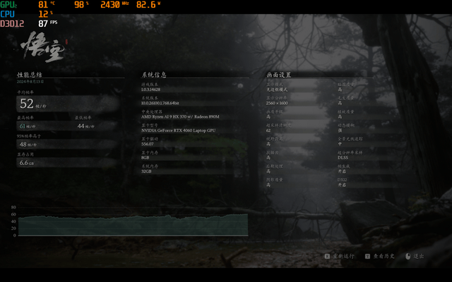 以上就是牛叔今天针对《黑神话:悟空》的天选Air 2024 RTX 4060轻薄本抢先性能体验了,总的来说,《黑神话:悟空》对硬件的要求并不低,但好在有DLSS 3这个黑科技在,所以RTX 4060在2.5K分辨率下也有流畅运行的画质挡位。最后,等到后面游戏正式开售,我们会有更加详细的性能测试和画面调整测试,敬请期待~