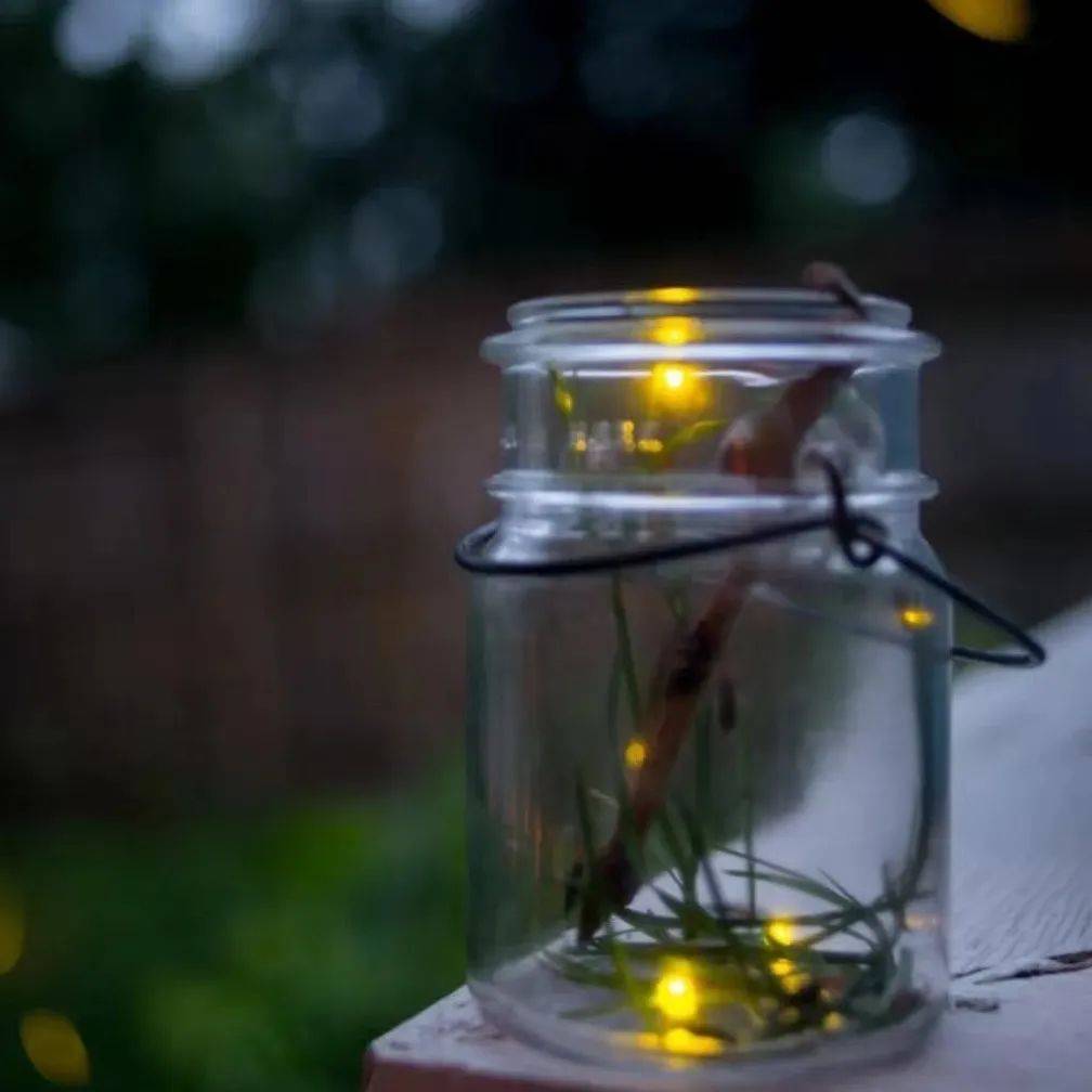 在自然环境中寻找并观察萤火虫,还可以抓来萤火虫放在一个透明瓶子里,就变成浪漫的冷光灯笼。