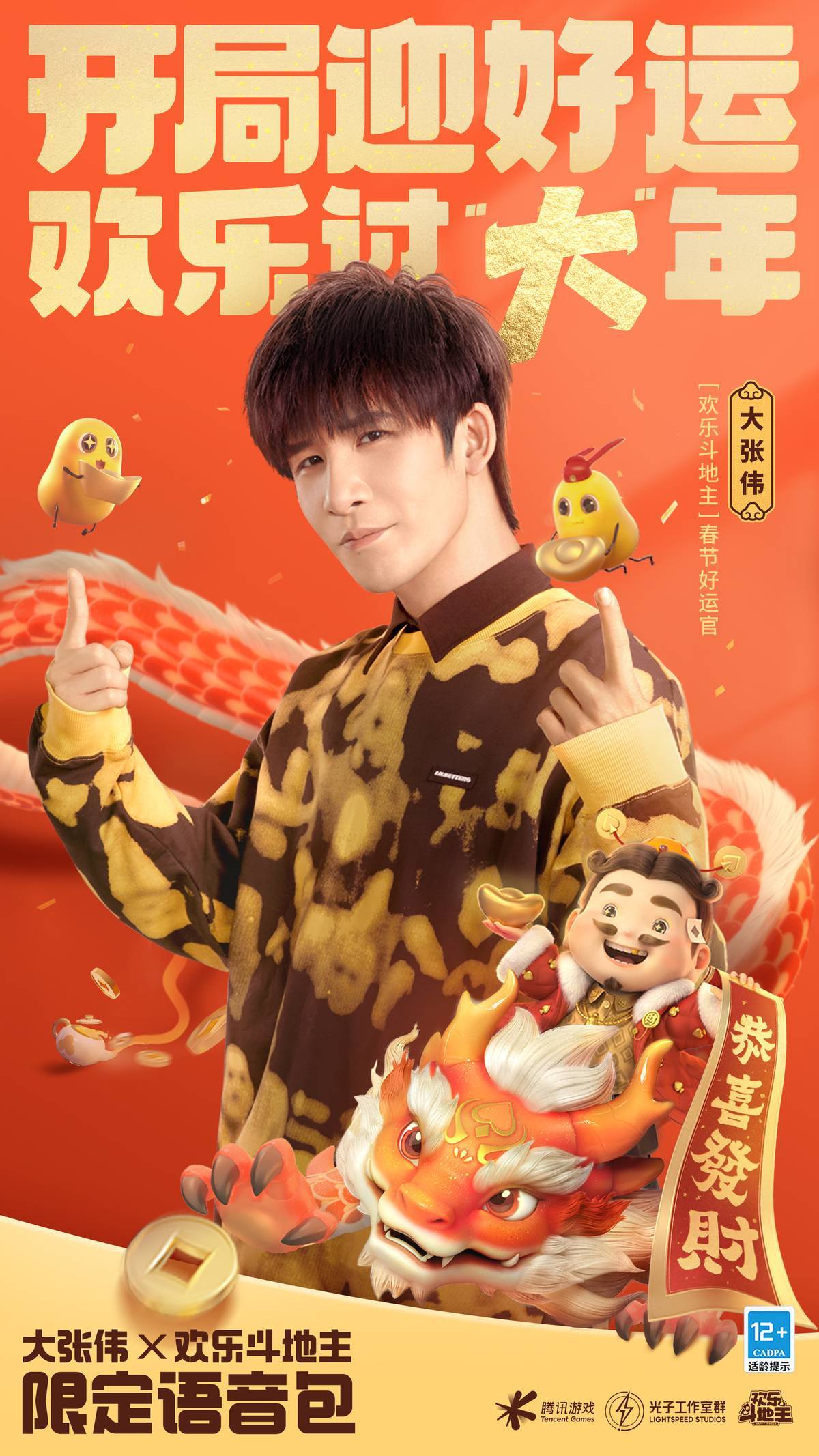 担任春节好运官的大张伟,以其独特的综艺造梗才华亮相《欢乐斗地主》!从2月2日起至3月31日,玩家只需登录游戏,参与“大张伟贺新春”活动,并完成指定任务,就能获得免费的“大张伟语音包”!