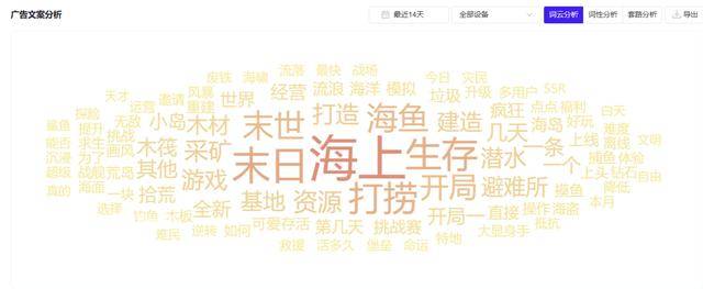 《疯狂水世界》的广告文案分析显示,最大字号的 “末日”“海上生存”“海” 是游戏的核心题材,“打捞”“建造”“资源”“基地”“木筏”“荒岛” 等词是游戏的核心循环。游戏整体买量定位精准,能够高效触达偏爱生存、末世题材的模拟经营类玩家。