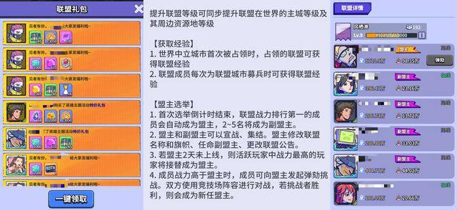《疯狂水世界》的大世界玩法也很注重平衡设计。在联盟中,玩家会出现明显的强弱分层。联盟内战斗力排行第一的成员会自动成为盟主,排名2-5名的玩家成为副盟主。盟主和副盟主共同主持联盟的整体战局,同时能获得更丰厚的资源回报,在联盟商店中换取更多奖励。同时,低氪玩家也可在联盟中享受大佬带来的资源扶持,获取各类全盟共享奖励。