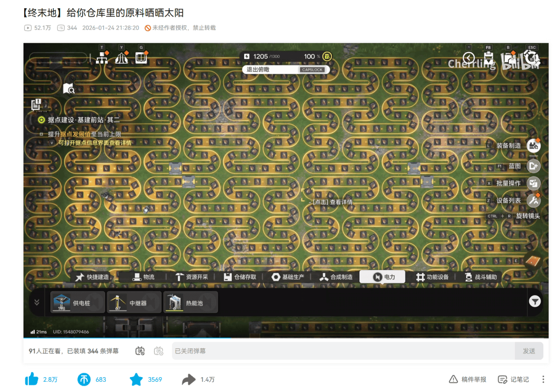 考虑到目前不少游戏时长有限的玩家,还没来到测试期间最受好评的国风地图武陵;已有的高端攻略还只是在核心玩家之间疯传;UGC仍有巨大的释放空间;鹰角对被带起的负面节奏或者说攻击,也展现出了极强的韧性,坚定玩法和持续优化体验……在用户大规模进入长草期之前,恐怕都是终末地的黄金发育期。