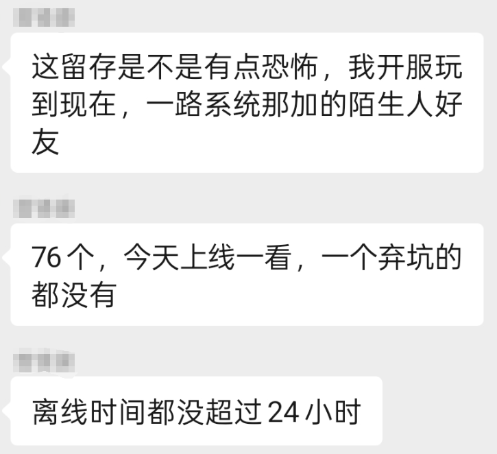 而这种“太像单机”的体验,似乎配合基建玩法丰富的目标,和游戏所储备的庞大内容量,造就了惊人的前期留存。一位群友说,游戏上线5天他加了100多个好友,可离线时间超过21小时的都寥寥无几,KOL也有类似的评论。