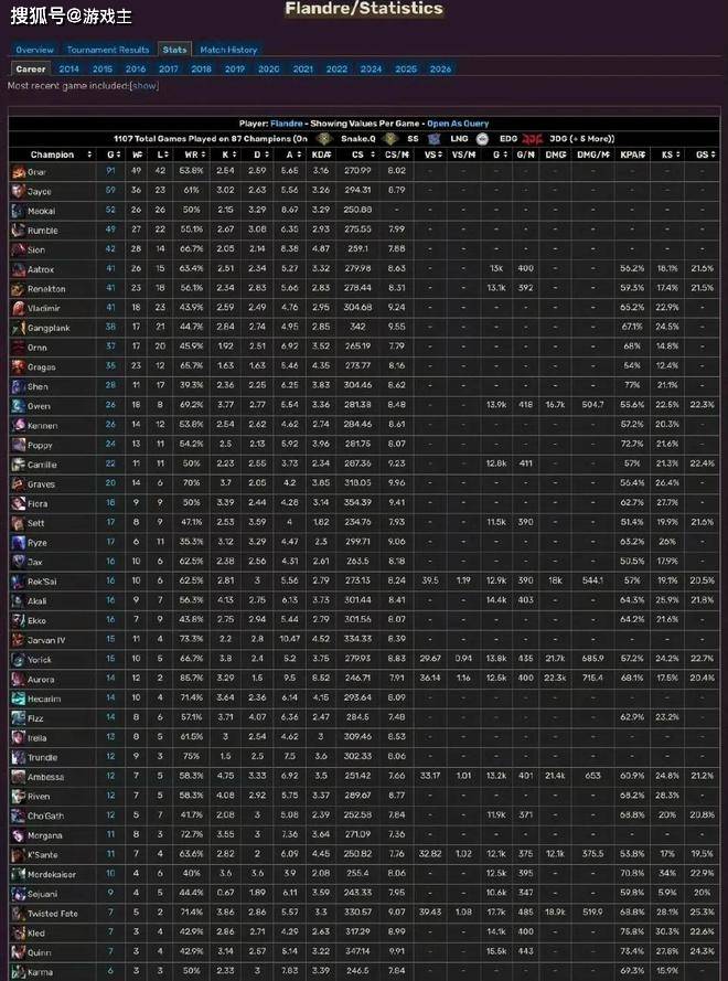 谁能想到,圣枪哥竟然在职业的舞台中使用了88个不同英雄。这可能就是老选手的优势吧,毕竟打的时间久,经历过不同的版本体验过不同的玩法。但也不得不承认,盛强哥应该是lpl赛区这么多年以来保持竞技水准最好的选手,同样也是出道十几年的时间,依旧还能够拿到lpl榜首的位置。