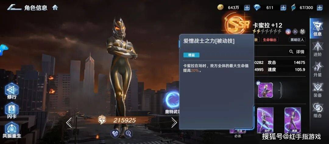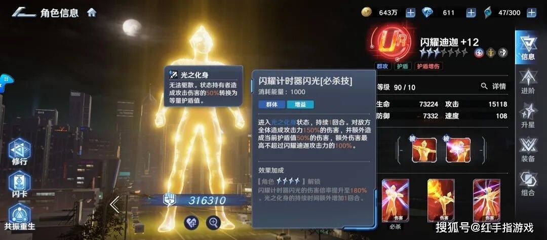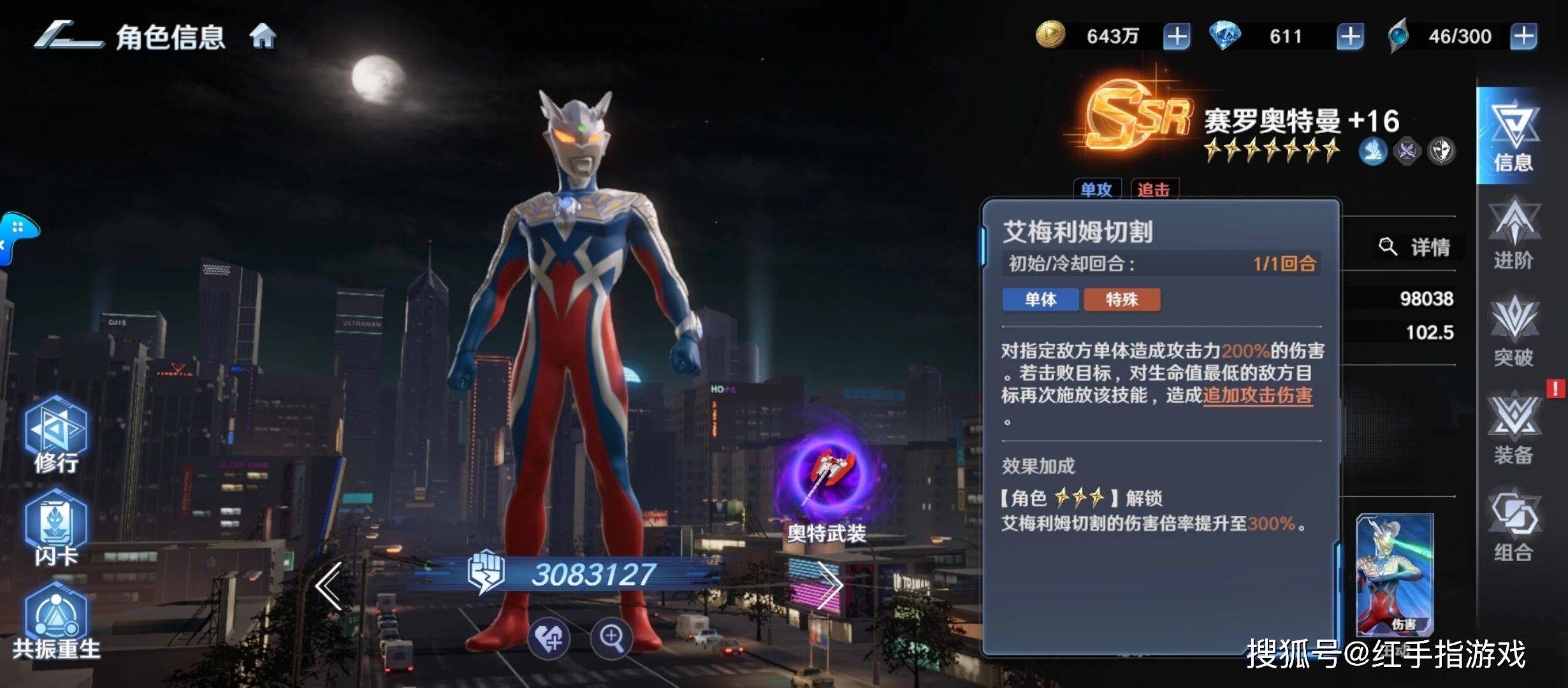 闪耀赛罗奥特曼:公认的强,群体技能倍率来到了250%,单体输出在理想情况下也能来到600%,不管是清图还是打boss都有很强的统治力。可以作为任何阵容的终极答案。