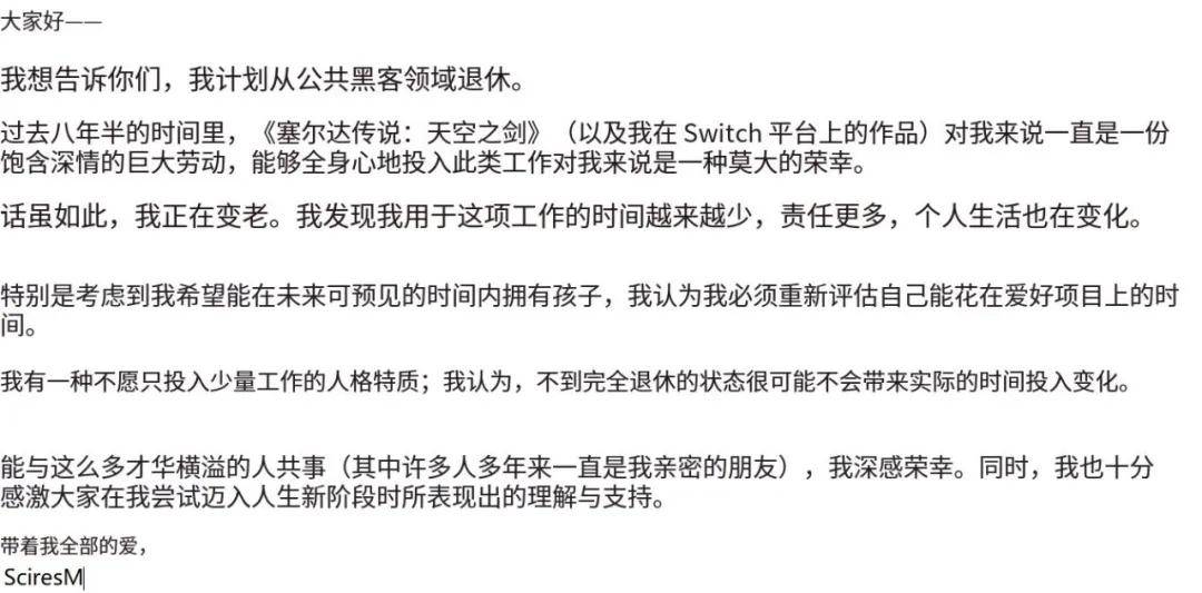 然后就是SciresM大神,为了回归家庭,宣布彻底退休,但不排除有其他大神接手开发。