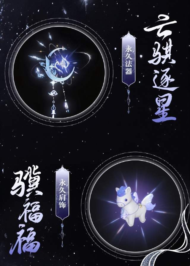 不仅如此,还有各种配饰搭配。比如,萌系肩饰【骥福福】,软萌小马挂在身上,开荒累了看一眼都治愈;永久法器【云骐逐星】如琉璃一般的半弯月状,就像似星轨环绕,随手一动,真的是无法用言语表达;还有武器【驰骏霜焰】在新服里特效拉满,蓝色冷焰挥起来又飒又能打,搭配时装上就是白马银袍闯江湖!
