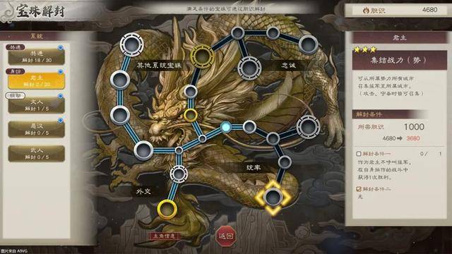 4.君主:同样也是补足,现在君主通过宝珠解锁可以消耗个人行动点直接移动自势力武将及免费提升忠诚度,以及解锁全域增援。但其中最重要的还是能够在不切换辅助的情况下,以较少的胆识消耗学习其他身份的宝珠,快速养成其他身份的优点为己用,提高君主身份的可玩性,其实就是需要刷的东西多了。