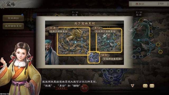 共通及身份宝珠为当前的固定技能树,而辅助宝珠则是自由选择的,可从其他身份宝珠中选择其一,但有限制,仅标识“辅助系统有效”的才能起效,虽然理解这么做是为了防止玩家武将太强做的限制,可多少还是限制了游戏的自由度。目前有三种专属辅助宝珠可享受全部加成: