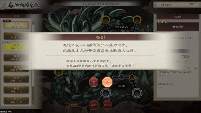 1.在野:追加了商人玩法,可以依靠宝珠解锁的开店、投资等手段来赚钱,从而达到富可敌国的实力。不过可惜的是,商人玩法并没有在经营模式上做深度扩展,拿开店来讲,仅宝珠解锁一下,连开店的选项都没有,仅在每季的报告中给你提一嘴本季赚了多少多少钱,单纯就是个增加金钱的技能罢了。除赚钱外,商人还可以高折扣买名品、投资城市、给别的势力送在野武将、造谣城市降资源和兵力、操纵势力间的同盟,宛如搅屎棍。